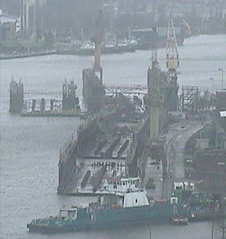 Smutny i wcześniej niespotykany widok - puste doki i dok-pontony Gryfii. Foto za pośrednictwem kamery www.magemar.com.pl{jathumbnail off}