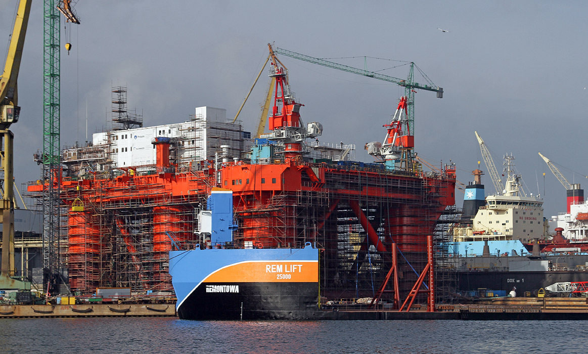 Gdańska Stocznia Remontowa SA, w której dokonana zostanie przebudowa i modernizacja platformy FPF-1 (Skrzyżowanie kopalni z rafinerią na ośmiu nogach płynie do Remontowej SA), zaplanowała także skomplikowaną operację dokowania (podnoszenia na doku pływającym) plaformy hotelowo-warsztatowej Safe Caledonia, która już od kilku miesięcy jest w Gdańsku.