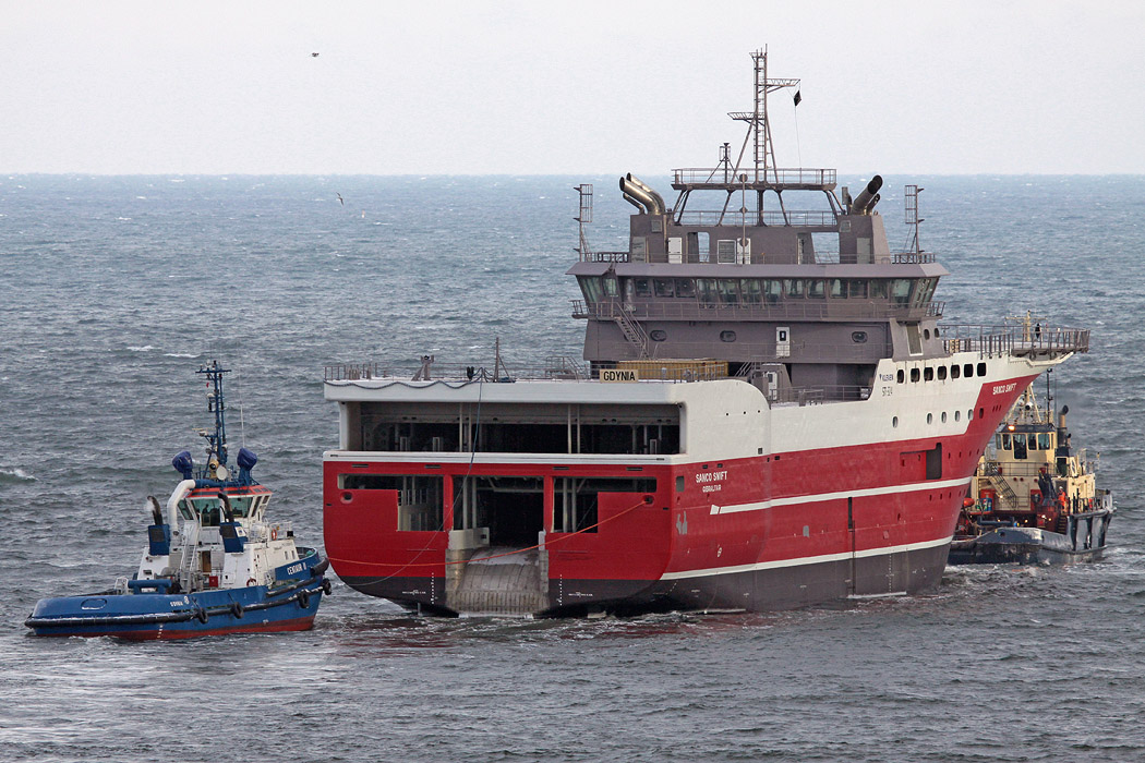Do Gursken, gdzie znajduje się stocznia Myklebust, częściowo wyposażony kadłub statku Sanco Swift holuje jednostka Frigga grupy holowniczej Svitzer (długość całkowita 33,65 m, moc napędu głównego 4892 KM / 3600 kW, uciąg na palu ok. 60 T). Zespół holowniczy spodziewany jest tam, o ile nie przeszkodzą warunki atmosferyczne, 27 stycznia br.