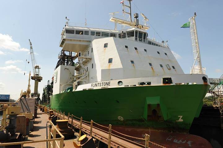 Jednostka należy do belgijskiej firmy DEME, która dysponuje flotą 300 specjalistycznych statków, w tym pogłębiarek. Zakres remontu podsypkowca objęty jest tajemnicą. - Armator ma do tego prawo. Taką zawarł umowę - tłumaczy Agnieszka Duszyńska z "Gryfii". Jak udało nam się ustalić, szczecińscy stoczniowcy zamontują na podsypkowcu nowe zbiorniki, wymienią wentylację i cześć instalacji. Wcześniej "Gryfia" remontowała także pogłębiarkę należącą do belgijskiego armatora. Flintstone stoi na największym doku szczecińskiej stoczni. Modernizacja jednostki potrwa do końca lipca.