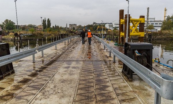 Szczecińską wyspę Gryfia ze stałym lądem połączył tymczasowy most, zmontowany z kilku tzw. barek pchanych. Trwają przy nim prace wykończeniowe. Najpóźniej w środę po moście przejadą pierwsze ciężarówki z materiałami do budowy nowej fabryki na wyspie. To inwestycja spółki Bilfinger Crist Offshore.