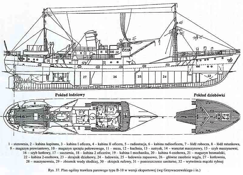 W 1947 r. CBKO pracowało już nad projektem trawlera parowego B10, którego generalnym projektantem był mgr inż. Janusz Staszewski. Ponadto pod kierunkiem inż. Henryka Giełdzika wykonywano adaptację otrzymanej z Francji dokumentacji dla rudowęglowca typu B30. Jednocześnie zespół napędowy dla tego statku projektował zespół profesora Adolfa Polaka, a dostarczyć go miały Zakłady Urządzeń Technicznych "Zgoda" w Świętochłowicach.