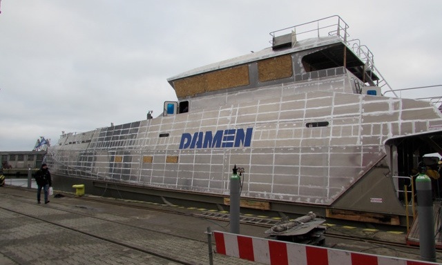 Prawie dwa tygodnie temu przypłynął Odrą do Szczecina w częściach. Teraz jest montowany i wyposażany. Wkrótce patrolowiec dla greckiej straży granicznej, zbudowany przez stocznię Damen w Kędzierzynie-Koźlu, zostanie odholowany do Holandii. Tam będzie doposażony, m.in. w silniki.