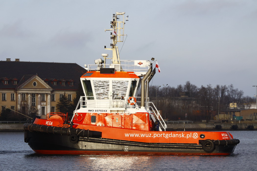 Holownik Vega do Gdańska dotarł w czwartek rano, 6 listopada. W kolejnych dniach przy nabrzeżu Obrońców Westerplatte Vega zyskała charakterystyczne dla floty WUŻ pomarańczowe malowanie. Także na jej burcie wzorem innych holowników znalazł się adres firmowej strony www, co dopiero od niedawna stało się stałym elementem wizualnym gdańskich holowników.