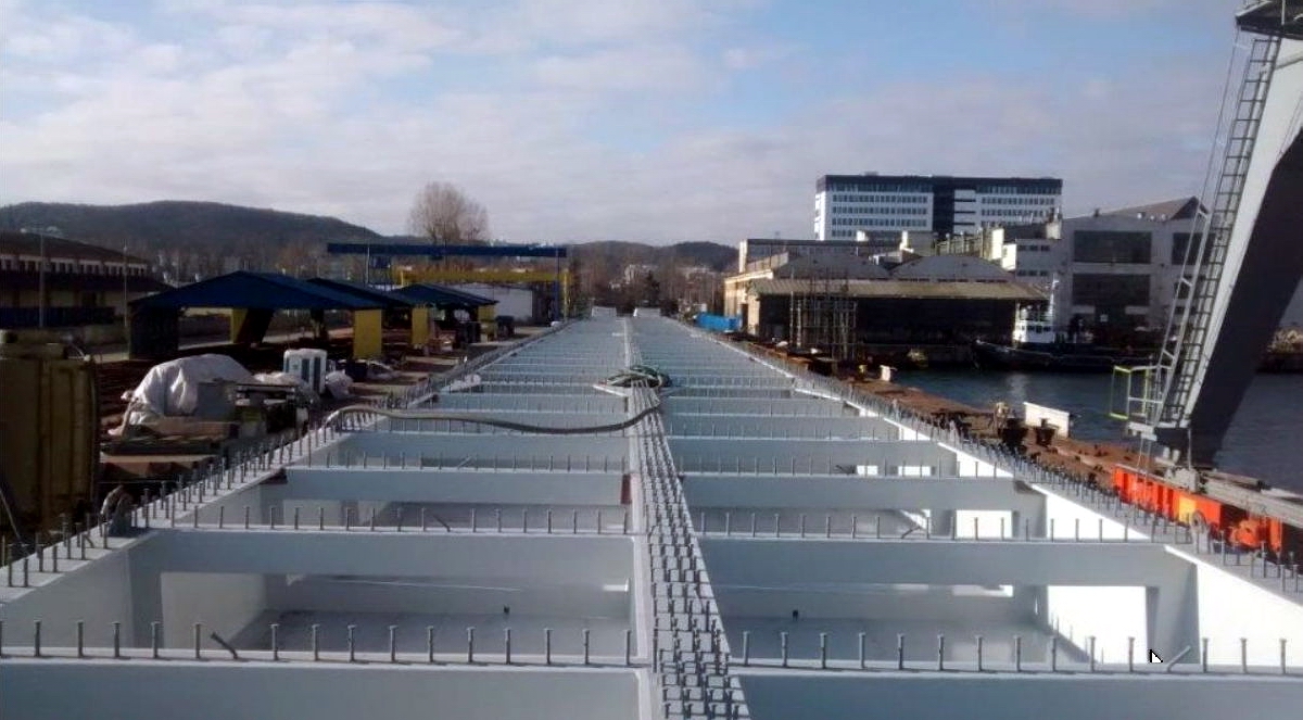 Most dostarczony będzie w 13 sekcjach na statku, następnie generalny wykonawca przetransportuje go do miejsca docelowego około kilkanaście kilometrów od portu w Torshavn i rozpocznie montaż. Konstrukcja skrzynkowa mostu waży łącznie 500 t, każda z sekcji ma 9 metrów szerokości. Łączna długość mostu to 140 metrów.