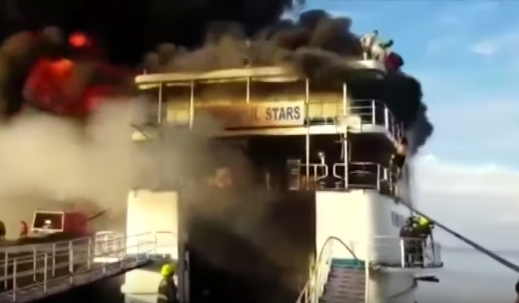 Dramatyczne chwile w portowym mieście Ormoc na Filipinach, na wyspie Leyte. Prom Wonderful Stars z 544 pasażerami na pokładzie stanął w płomieniach.