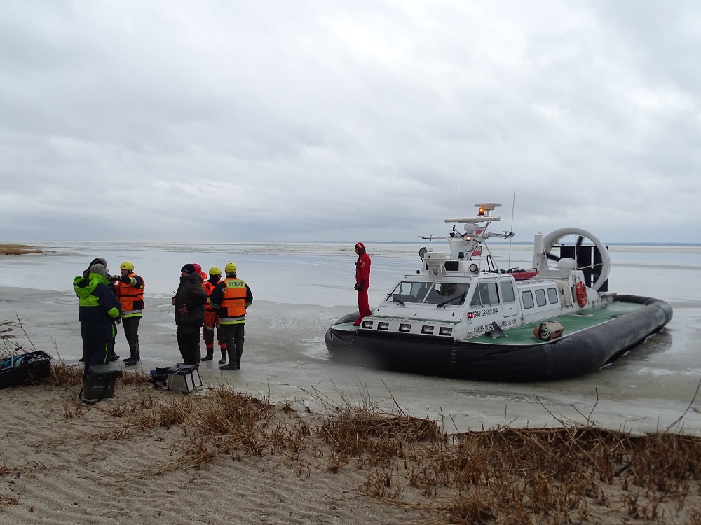 Tuż po godzinie 13.00 załoga poduszkowca SG-411 otrzymała od strażaków z Braniewa informację, że na wysokości Różańca czterech wędkarzy zostało uwięzionych na krze lodowej. Mężczyźni nie mogli samodzielnie bezpiecznie powrócić na ląd. Do akcji natychmiast wystartował poduszkowiec SG-411 i po chwili dotarł do wędkarzy. By nie dopuścić do załamania lodu, dowódca poduszkowca nakazał mężczyznom się rozproszyć. Wtedy jeden z załogantów ubrany w specjalny skafander, zabezpieczony linką asekuracyjną, zszedł na lód i po kolei pomógł każdemu z wędkarzy wejść na pokład poduszkowca. Żaden z nich nie potrzebował pomocy medycznej, wszystkich bezpiecznie przetransportowano na ląd i przekazano strażakom.
