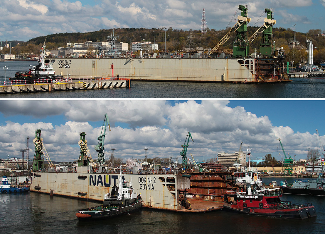 Dodajmy, że Hordafor VI, jako nie pierwszy już statek, zadokowany był na doku nr 2 Nauty, który przeholowano z jego dotychczasowego miejsca, by ułatwić dostęp do przechylonego doku nr 1. Dok nr 2 został przemieszczony na teren "dawnej" stoczni Nauta (blisko centrum miasta), gdzie stocznia już zredukowała aktywność (przenosząc się w rejon byłej Stoczni Gdynia), ale wciąż jeszcze w pewnym zakresie z niego korzysta. Przeholunek doku na "starą Nautę" miał miejsce 30 kwietnia br.