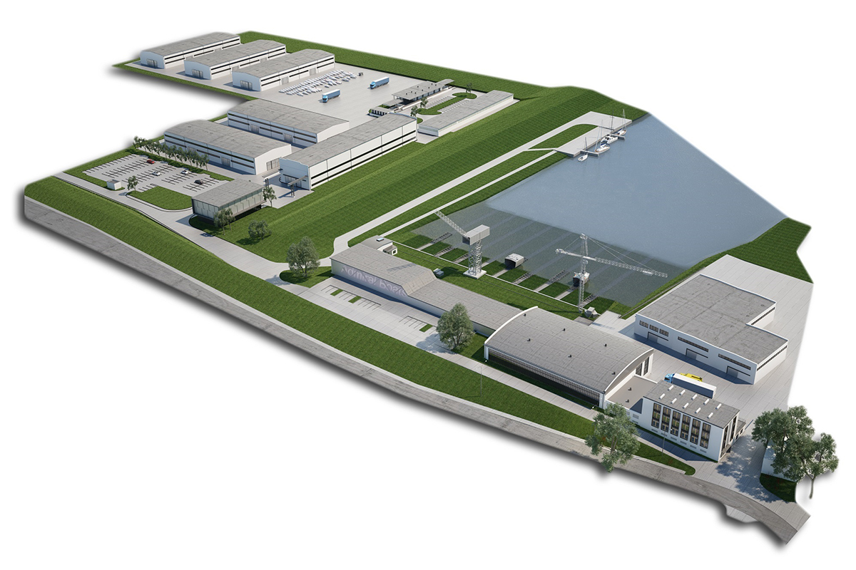 Wizualizacje przedstawiają projekt rewitalizacji i modernizacji tczewskiej stoczni deklarowanej / zapowiadanej przez Admiral Boats.