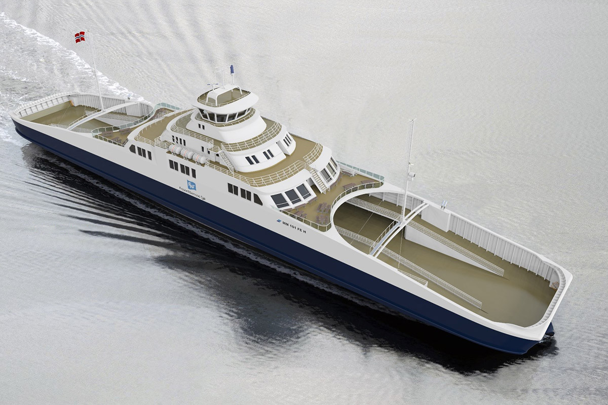 typ statku - pasażersko-samochodowy prom fiordowy, dwustronny z napędem hybrydowym