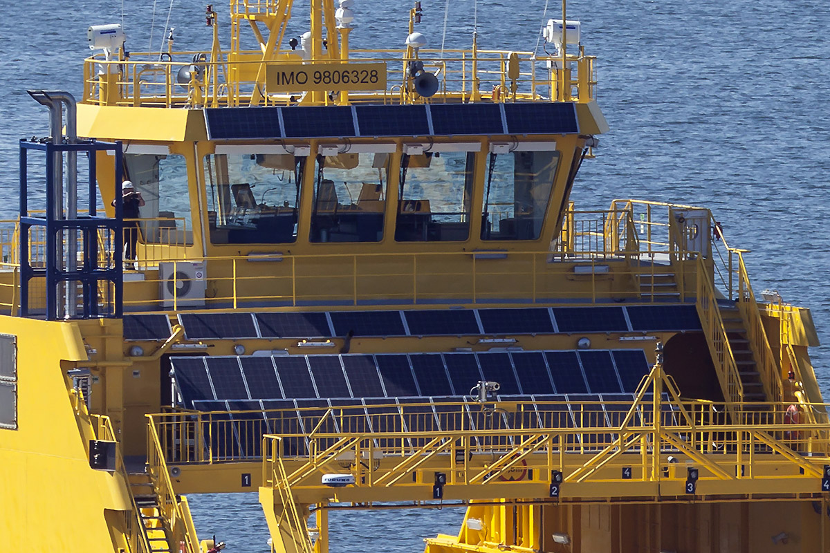 Ponadto, statek wyposażony został w dość dużej powierzchni baterie ogniw fotowoltanicznych zainstalowane na przedniej i tylnej ścianie nadbudówki.