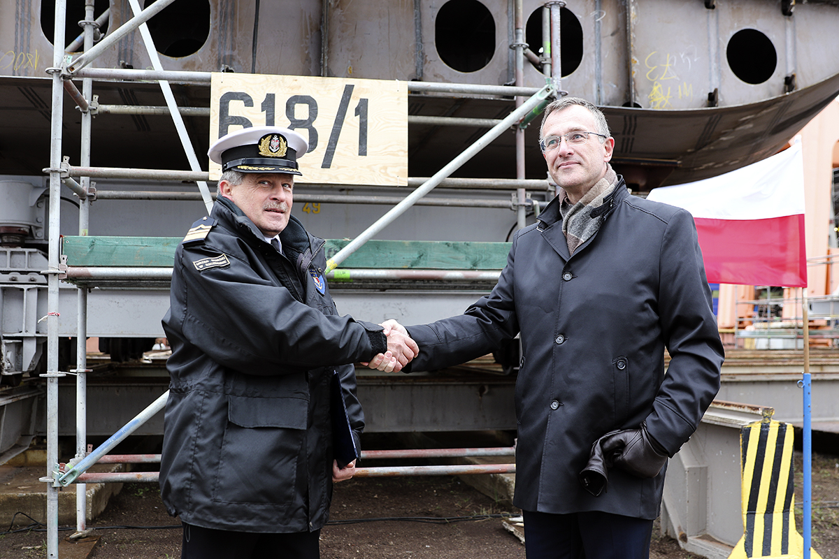- Mimo tej jesiennej aury przeżywamy dzisiaj radosny moment w historii naszej stoczni i historii polskiej aktywności na morzu – mówił Piotr Dowżenko, prezes Remontowa Shipbuilding SA. – Uroczystość położenia stępki pod budowę pierwszej jednostki wielozadaniowej dla Urzędu Morskiego w Szczecinie, w praktyce oznacza zakończenie bardzo ważnych etapów budowy, takich jak projektowanie, wybór i zamówienie urządzeń oraz przygotowanie elementów potrzebnych do budowy jednostki w jej finalnym kształcie. Jest to niezwykle ciekawy i ambitny projekt, z którego jesteśmy dumni – dodał.