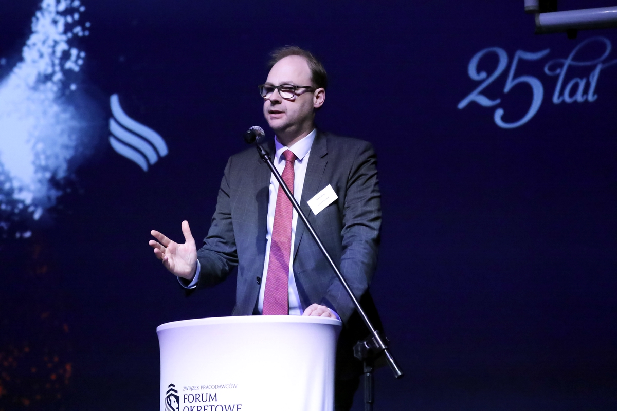 - Minione 25 lat działalności Forum Okrętowego, to bardzo ważny rozdział w historii polskiego przemysłu stoczniowego. Ta historia jest mi bardzo bliska, ponieważ ja także ją współtworzyłem. A trzeba pamiętać, że z tego okresu niemal połowa - 11 lat - przypadło na czas, w którym nie byliśmy jeszcze w Unii Europejskiej - mówił Piotr Soyka dodając, że organizacja ta powstała zaledwie cztery lata po tym, jak w dużej części Europy runął system gospodarki centralnie sterowanej, co skutkowało utratą z dnia na dzień wszystkich zamówień stoczniowych realizowanych głównie dla krajów takich jak ZSRR, NRD, Bułgaria i Rumunia.