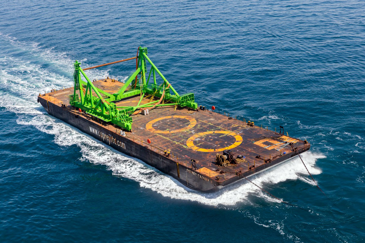 Zespół holowniczy składał się z barko-pontonu heavy-lift o nazwie Osprey Carrier II (76,02 m LOA, nośność 4746 t) oraz eksploatowanego przez grupę Muller Dordrecht (Rederij T. Muller BV i Muller Heavy Transport BV) holownika En Avant 10 (nr IMO 9264386, GT 358, 30,00 m LOA, uciąg na palu 50,00 T, moc napędu głównego 2942 kW / 4000 KM). Zbudowany w 2002 roku holownik jest znany w Szczecinie - od początku 2004 do połowy 2012 pływał jako Tryton w barwach szczecińskiego Zakładu Usług Żeglugowych Sp. z o.o.