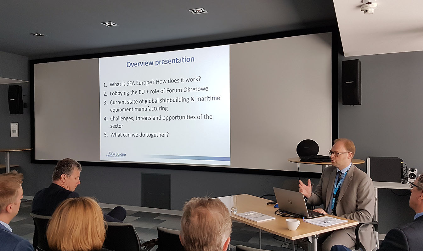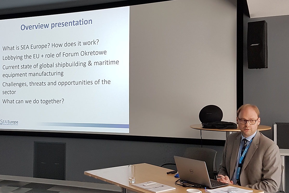 W działaniach tych uczestniczy Forum Okrętowe, koordynując na szczeblu krajowym przedsięwzięcia inicjowane przez SEA Europe w Brukseli. W trakcie spotkania omówione możliwości i sposoby intensywniejszego zaangażowania się obu organizacji w te przedsięwzięcia.