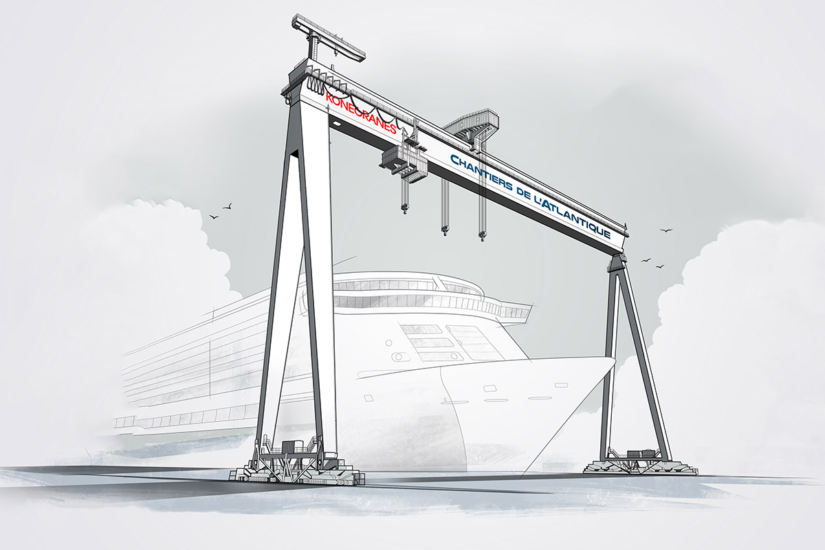 Spółki Konecranes i Chantiers de l'Atlantique, stocznia w St. Nazaire we Francji, podpisały umowę na dostawę suwnicy bramowej Konecranes Goliath. Będzie ona obsługiwać duże bloki i sekcje okrętowe przenoszone nad suchym dokiem, odgrywając kluczową rolę w montażu statków w tej znanej stoczni, jednej z nielicznych w świecie budującej duże wycieczkowce.
