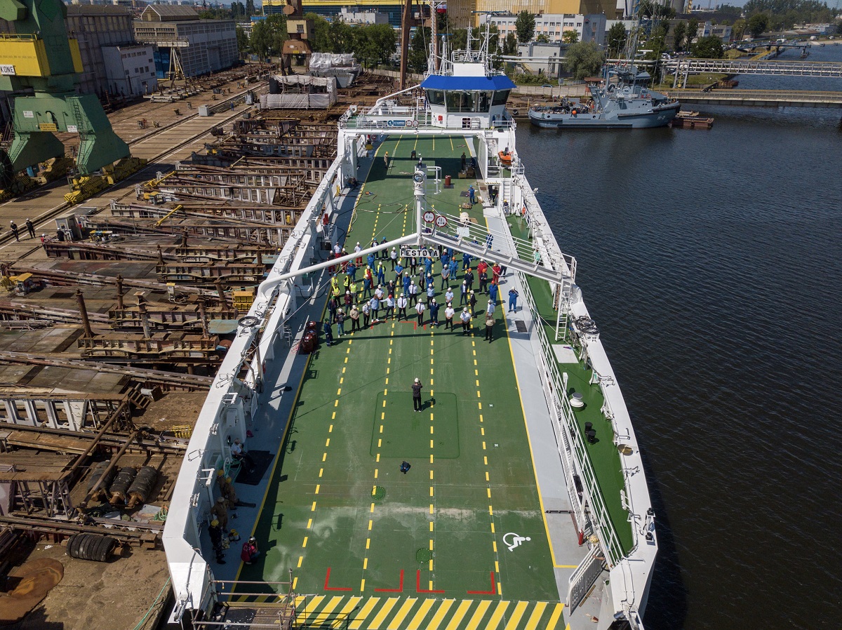 Na jednostce B619/2 przeprowadzane są właśnie próby na uwięzi - HAT (ang. Harbour Acceptance Test). Zdecydowana większość prac jest zakończona. Obecnie, razem z serwisami skupiamy się na uruchomieniu systemów. Opierając się na wiedzy i dużym doświadczeniu z prób HAT na B619/1, wszystko wskazuje na to, że czas ich realizacji skróci się o około połowę. Próby morskie planowane są na przełom lipca i sierpnia bieżącego roku. Harmonogram ustalony z armatorem przewiduje przekazanie statku na początku sierpnia br. – mówił Piotr Alboszta. – Jeśli chodzi o jednostkę B619/3 to trwają na niej zaawansowane prace kablowe, statek jest w trakcie wyposażania. Niebawem nastąpi malowanie na gotowo wszystkich powierzchni zewnętrznych.