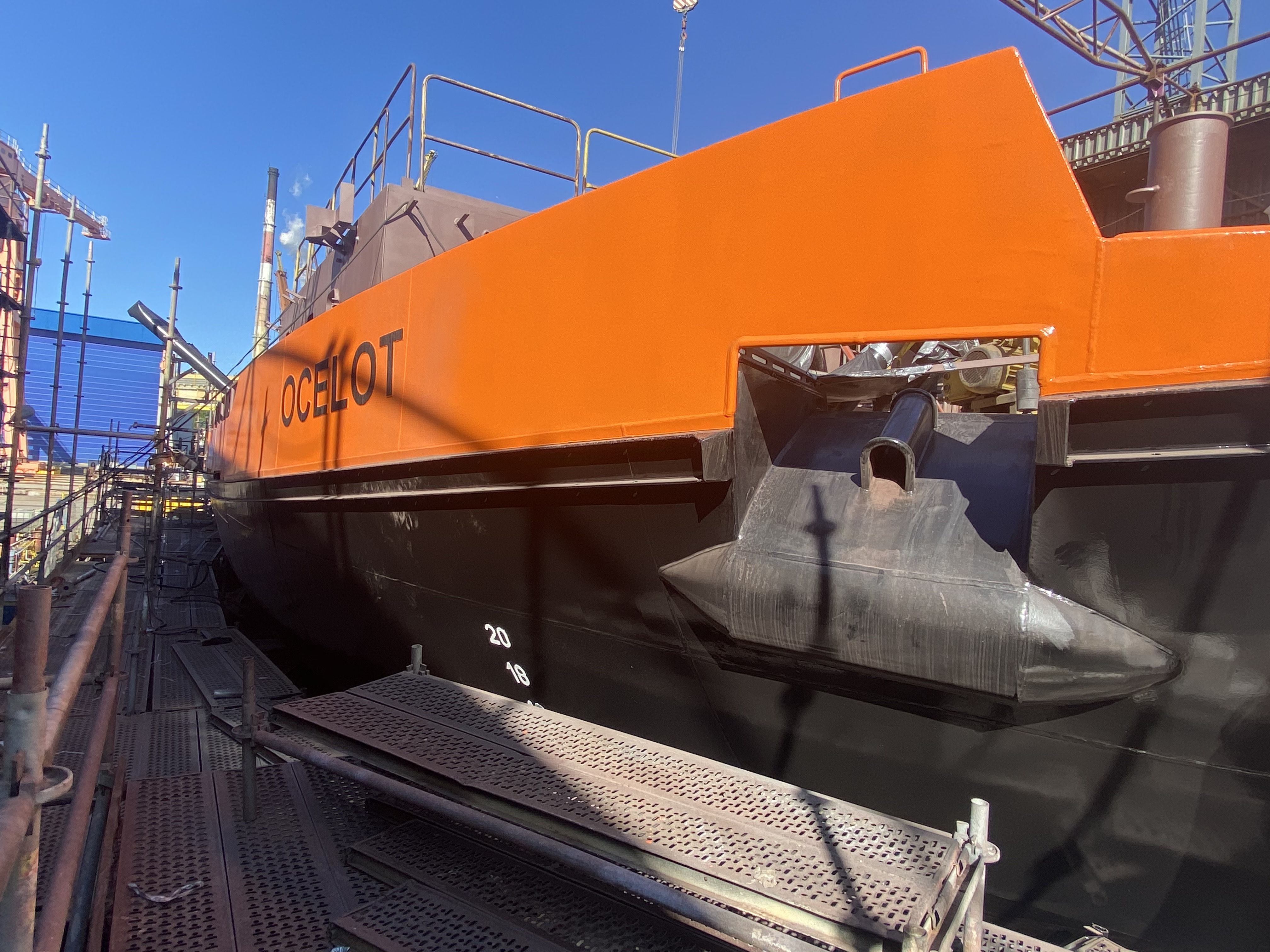 Na Ocelocie zakończono zbrojenia na wszystkich zbiornikach, odbyły się także próby szczelności. Zakończono piaskowanie i malowanie jednostki, planowany jest montaż układu napędowego i sterowego – mówi Stefan Iwicki, kierownik Centrum Operacyjnego Ochrony Przeciwpowodziowej Wód Polskich w Szczecinie. – W przypadku Tarpana zaawansowanie prac jest bardzo podobne. Montaż zbrojeń już się zakończył, montaż rurociągów i fundamentów według harmonogramów wykonywany jest w drugiej połowie września. Trwa również montaż sekcji i prefabrykacja – dodaje kierownik Iwicki. Nad procesami technicznymi czuwają inżynierowie i technicy stoczniowi, a wszystkie działania są na bieżąco kontrolowane przez inspektorów Wód Polskich w Szczecinie.