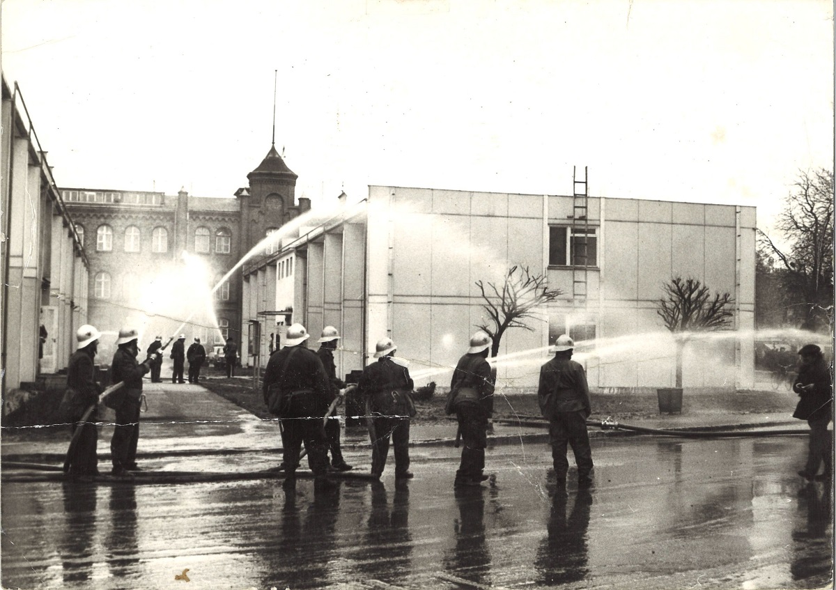 Remiza to 2-piętrowy budynek o powierzchni użytkowej 550 m2. Pierwotnie wzniesiony jako parterowy obiekt, z czasem został rozbudowany o piętro z pomieszczeniami socjalnymi. Po modernizacji budynek zyskał typowe szerokie bramy dla wozów strażackich i stajnię dla koni. Około 1955 roku dołączono do elewacji frontowej dobudówkę, powiększającą przestrzeń dla wozów strażackich. Budynek w swojej pierwotnej funkcji użytkowany był do połowy lat 90-tych.