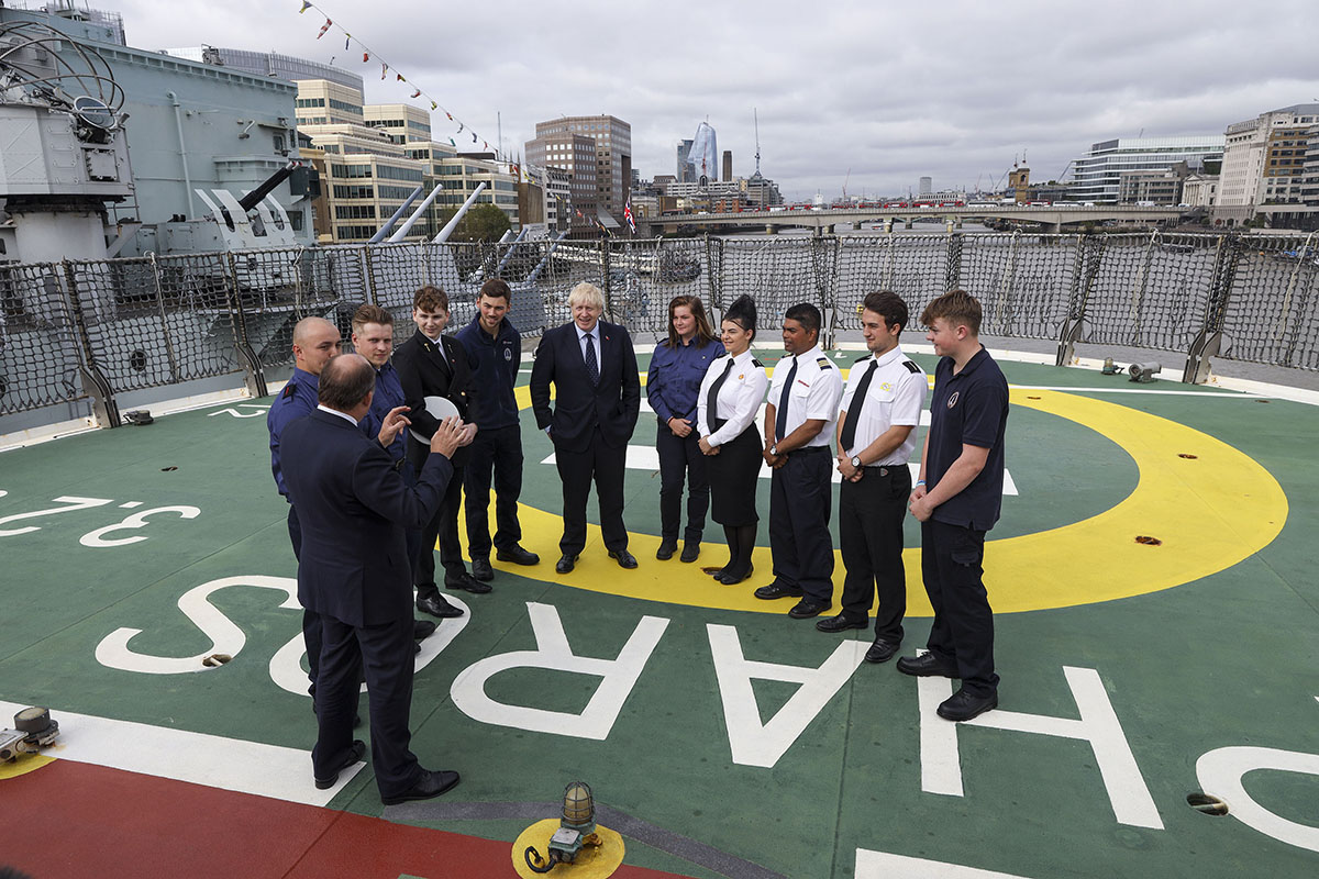 We wrześniu opublikiwano krótki film informacyjno-propagandowy o planach rządu wobec przemysłu okrętowego. W ramach cyklu wydarzeń "Londyńskiego Tygodnia Morskiego" (London Shipping Week) w reprezentacyjnym miejscu, w centrum Londynu, przy okręcie-muzeum HMS Belfast (lekkim krążowniku z czasów II wojny światowej) ustawiono wielozadaniowy stawiacz pław i statek obsługi latarni morskich NLV Pharos.To właśnie na tym statku nakręcono ujęcia z wizytującym premierem i pełne zapału oświadczenie Borisa Johnsona mające przekonywać o zaangażowaniu obecnego konserwatywnego rządu brytyjskiego w dzieło odbudowy siły i pozycji przemysłu okrętowego Wielkiej Brytanii Johnson, wygłaszający swoją krótką przemowę, sfilmowany został na lądowisku dla śmigłowca właśnie na statku NLV Pharos