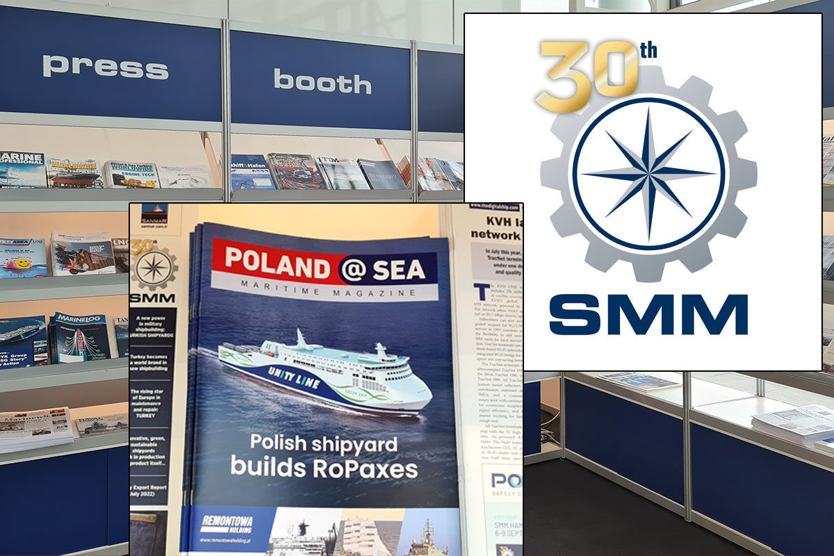 PortalMorski.pl jest wśród partnerów medialnych targów SMM. Uczestnicy targów mają zapewnioną świeżą dawkę ciekawych informacji o osiągnięciach technicznych i rynkowych polskiego sektora morskiego w dystrybuowanym na SMM 2022 anglojęzycznym magazynie "Poland at Sea".