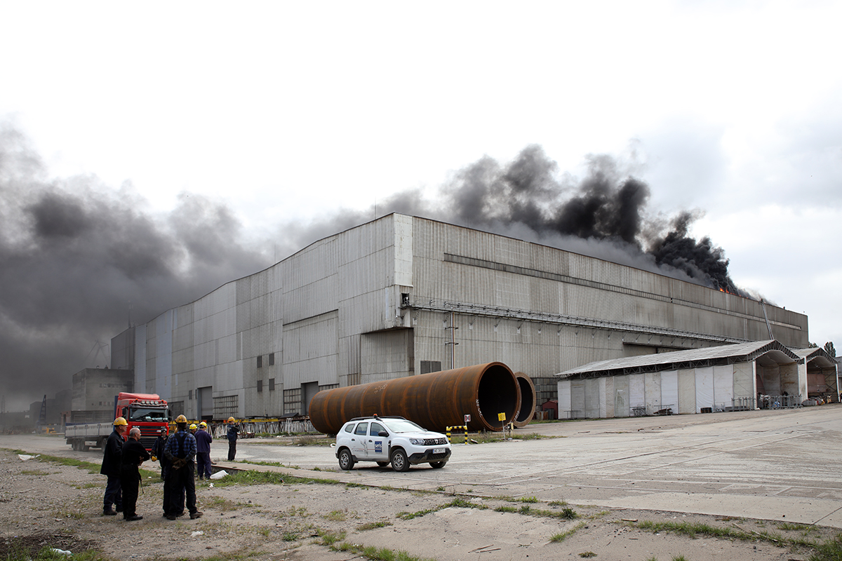 Ogień pojawił się na dachu Hali K1, umożliwiającej produkcję wielkogabarytowych konstrukcji, m.in. wież wiatrowych. Zapaliła się papa podczas prowadzonych prac dekarskich.