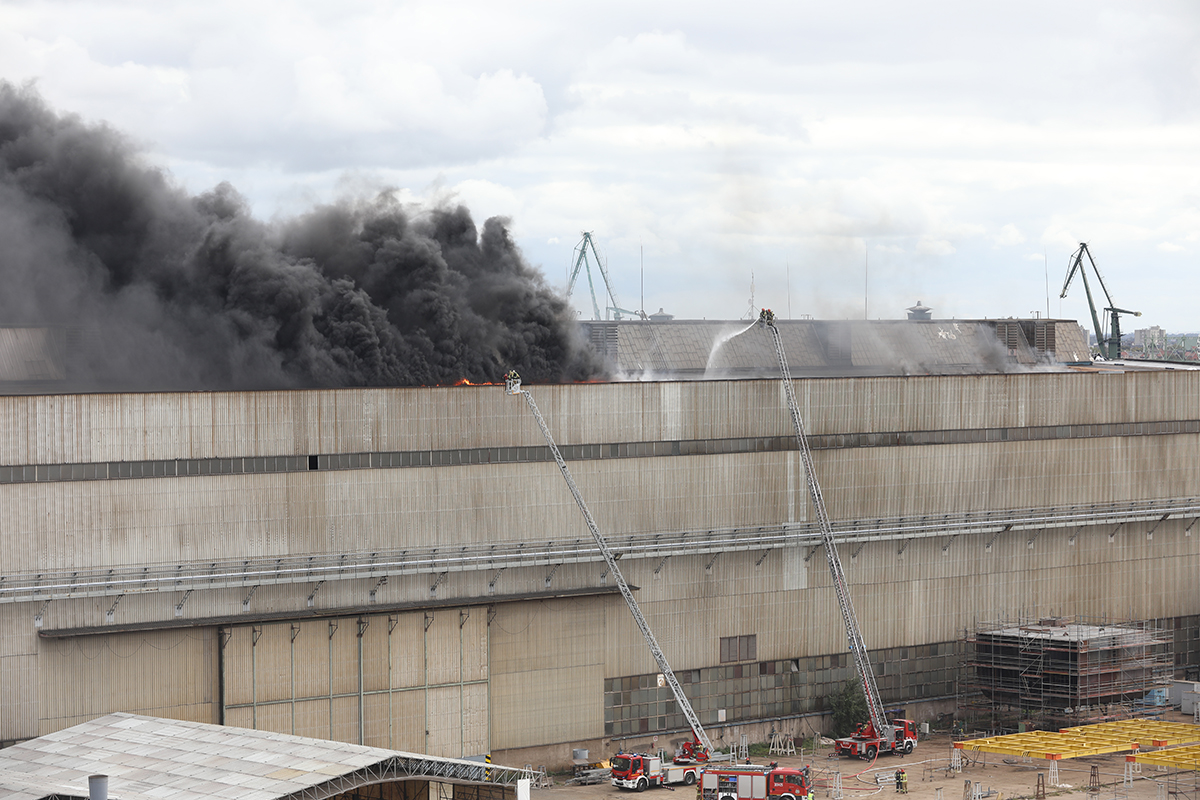 Jak poinformował nas rzecznik prasowy Komendy Wojewódzkiej Państwowej Straży Pożarnej w Gdańsku, pali się dach hali produkcyjnej na terenie Stoczni Gdańsk SA.