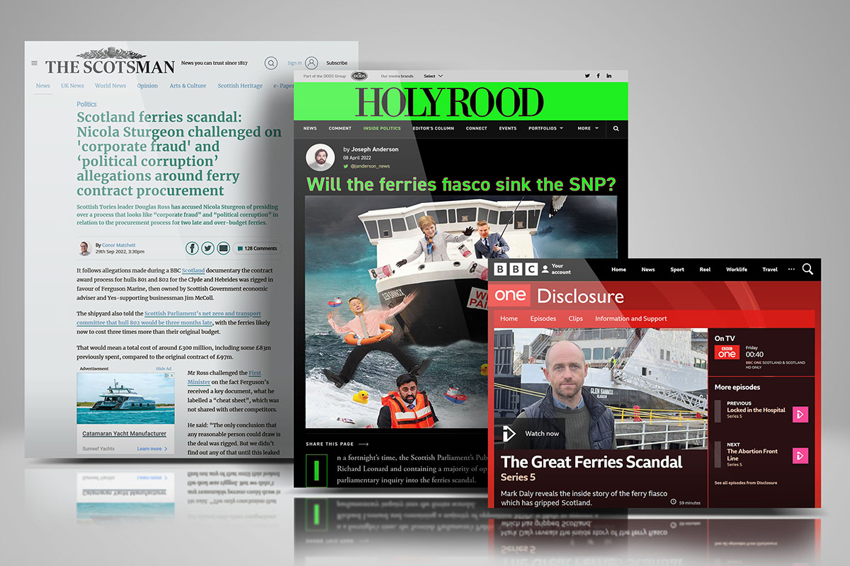 W 2014 roku w Szkocji ogłoszono unijny przetarg na budowę dwóch promów pasażersko-samochodowych dla CalMac, który ostatecznie wygrała tamtejsza stocznia. 27 września b.r. brytyjska stacja BBC wyemitowała reportaż pod tytułem „Wielki skandal promowy”, w którym ujawniła szokujące dokumenty rzucające nowe światło na sposób przeprowadzenia przetargu, wykazując liczne jego nieprawidłowości.