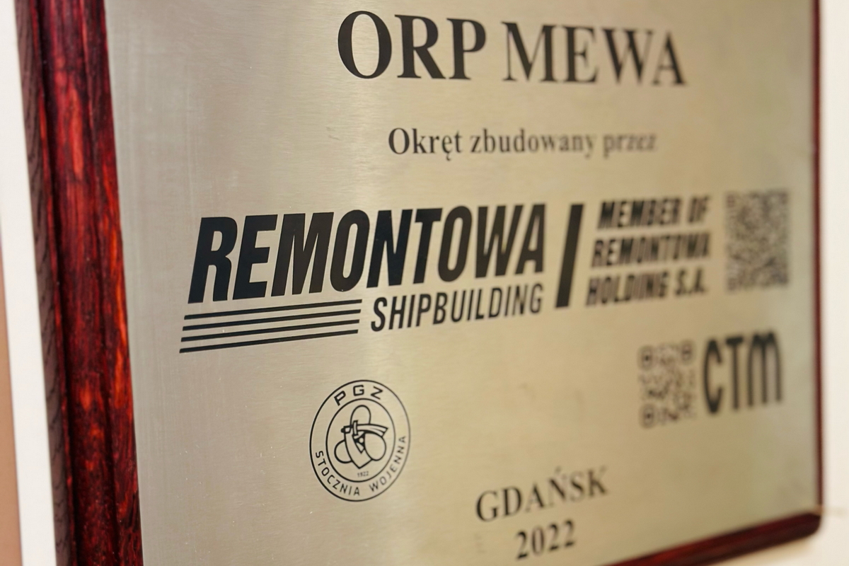 W stoczni Remontowa Shipbuilding S.A. w środę, 21 bm. podpisano protokół zdawczo-odbiorczy trzeciego z serii, nowoczesnego niszczyciela min - okrętu ORP Mewa dla Marynarki Wojennej RP.