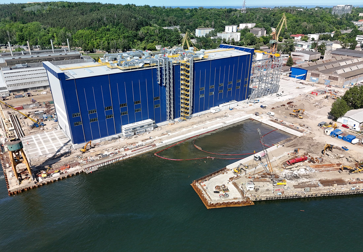 Posadzka betonowa w Hali Kadłubowej o wytrzymałości 20t/m kw. jest już gotowa. Rozpoczęły się też prace przy układaniu warstwy żywicy antyelektrostatycznej oraz antypoślizgowej na posadzce w Hali Produkcyjnej: – To ostatnia warstwa, można powiedzieć „wykładzina”, jeśli chodzi o nawierzchnię w tej Hali – dodaje Przemysław Młynarczyk. Przebudowywana jest infrastruktura techniczna, nabrzeże oraz drogi wewnętrzne. Wszystkie prace drogowe mają zakończyć pod koniec czerwca.