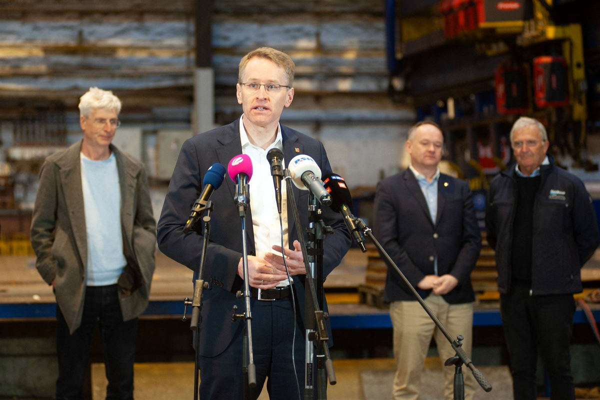Premier landu Szlezwika-Holsztynu Daniel Günther i sekretarz stanu ds. gospodarczych Julia Carstens wzięli udział w spotkaniu ze stoczniowcami zakładu FSG we Flensburgu, gdzie właściciele Grupy Rönner przedstawili się pracownikom.