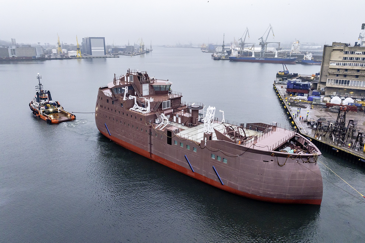 W piątek 28 lutego, z gdyńskiej stoczni CRIST wyholowany został częściowo wyposażony kadłub statku do obsługi morskich farm wiatrowych, budowanego dla Bernhard Schulte Offshore na zlecenie Ulstein Verft.