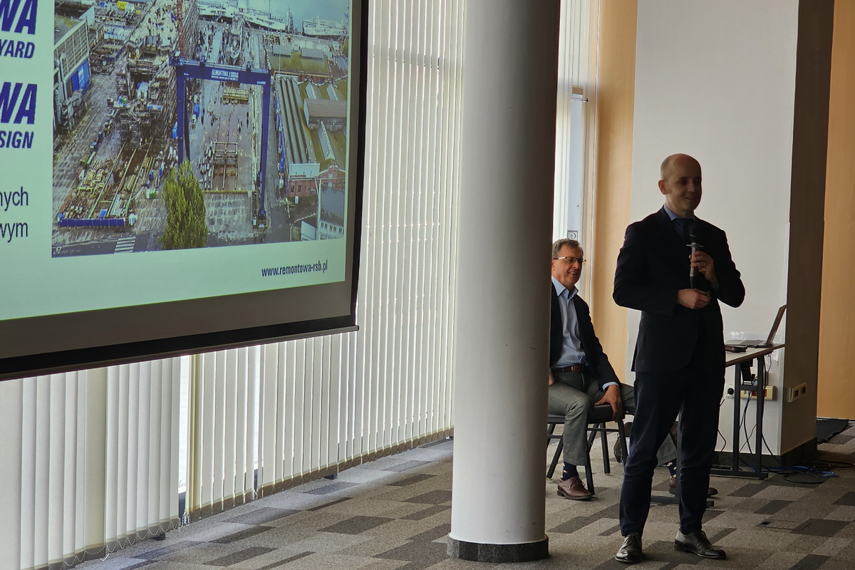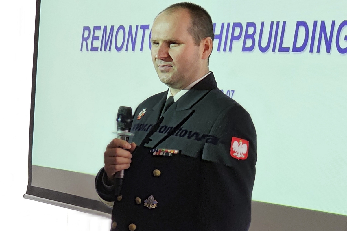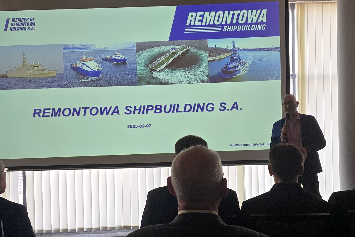 Następnie prezentację wyrobów stoczni Remontowa Shipbuilding przedstawił członek zarządu Bartłomiej Pomierski. Podkreślił, że produkcja na potrzeby Marynarki Wojennej stała się dla stoczni priorytetem, co wynika z rosnącego zagrożenia bezpieczeństwa naszego kraju. Realizowane z powodzeniem projekty wojskowe nie odbyłyby się bez ogromnego doświadczenia, sprawności i wydajności stoczni, zdobytej w trakcie realizacji projektów komercyjnych. Ponad 120 w pełni wyposażonych jednostek, wybudowanych od roku 2000, z których duża część została zaprojektowana przez działające w tej samej grupie kapitałowej biuro projektowe Remontowa Marine Design & Consulting, pozwoliło stoczni podjąć się realizacji z powodzeniem projektów dla Marynarki Wojennej.