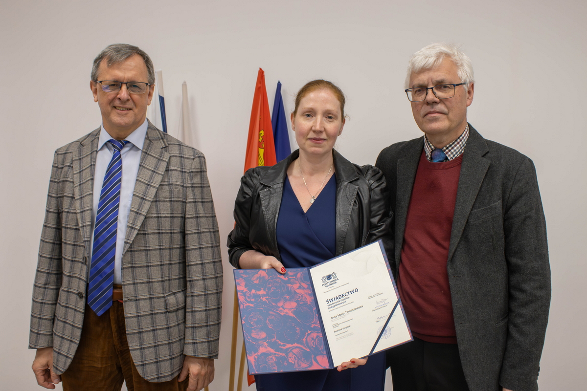 Najlepszą studentką I edycji studiów podyplomowych została Anna Tomaszewska, która osiągnęła średnią ocenę ze wszystkich przedmiotów zbliżoną do ideału - 4,906/5. Pani Anna jest absolwentką Politechniki Gdańskiej kierunku Inżynieria Środowiska - Specjalność Inżynieria Sanitarna.