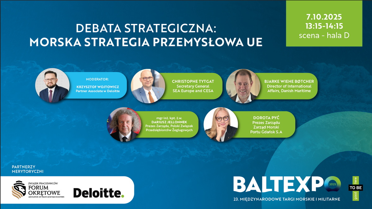 Unia Europejska po raz pierwszy od momentu jej powstania, zdecydowała się na stworzenie strategii przemysłowej dla całej szeroko rozumianej branży morskiej, obejmującej wszystkie jej sektory, tj.: stocznie, producentów wyposażenia okrętowego, porty i ich operatorów, armatorów, przedsiębiorców żeglugowych i inne. I temu właśnie tematowi poświęcona zostanie Debata Strategiczna, w której wezmą udział eksperci zaproszeni przez organizatorów Targów.