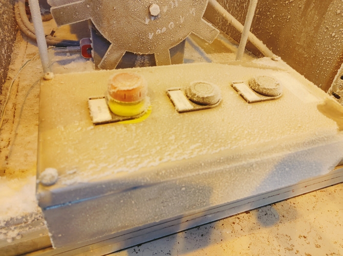 Wszystkie elementy poddano testom w komorze klimatycznej w temperaturze -52°C. Do testów czujników indukcyjnych wykonano specjalne stanowisko wyposażone w różne tarcze zębate, które wykorzystano do weryfikacji generowanych impulsów przez czujniki przy różnych prędkościach obrotowych, co odwzorowywało różne prędkości wału wciągarki.