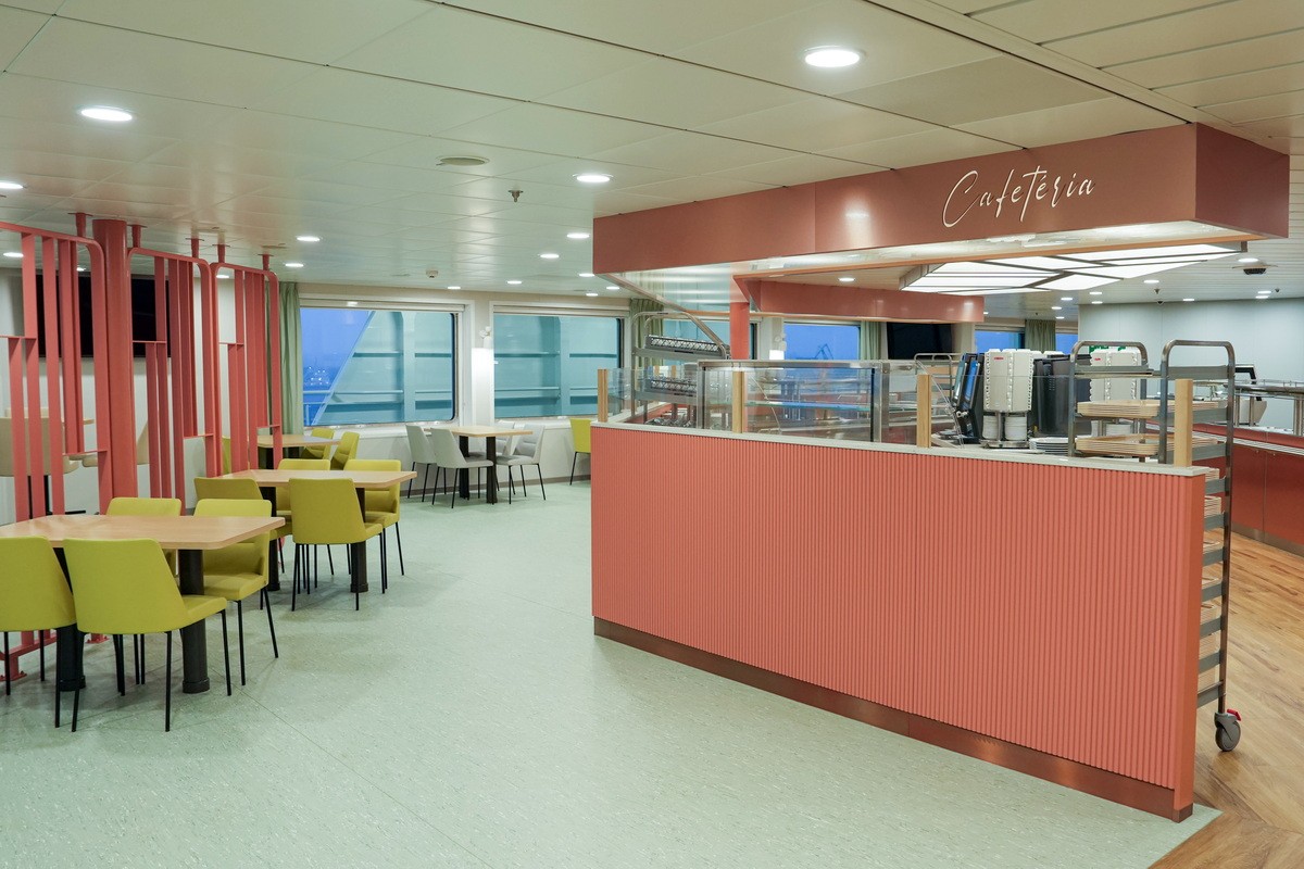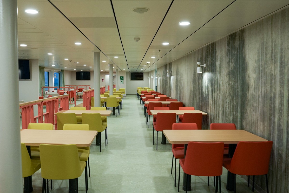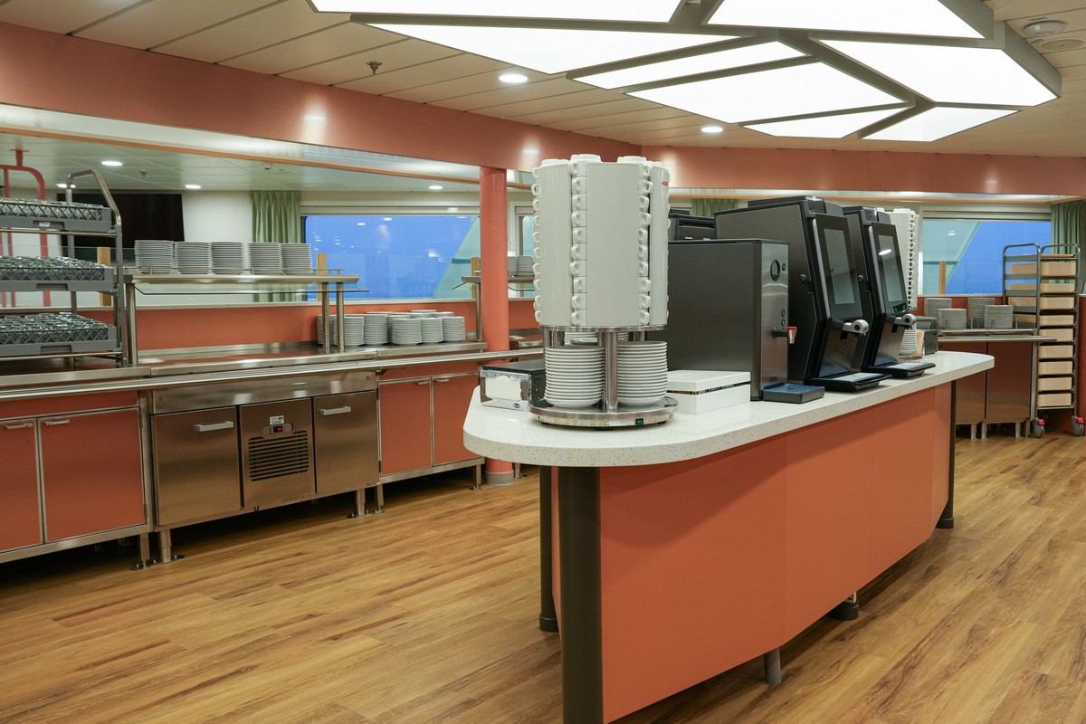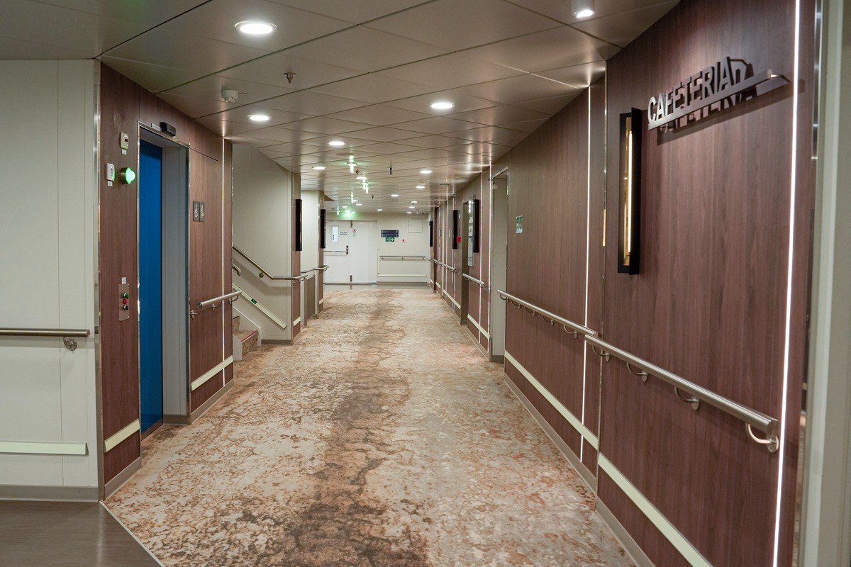 Na promie przewidziano liczne przestrzenie wypoczynkowe – kafeterię, bary oraz strefy rodzinne, w których można zjeść posiłek, spotkać się z innymi pasażerami lub spędzić czas z dziećmi. Całość wspiera także nowoczesna inżynieria bezpieczeństwa, obejmująca systemy przeciwpożarowe i kontrolne.