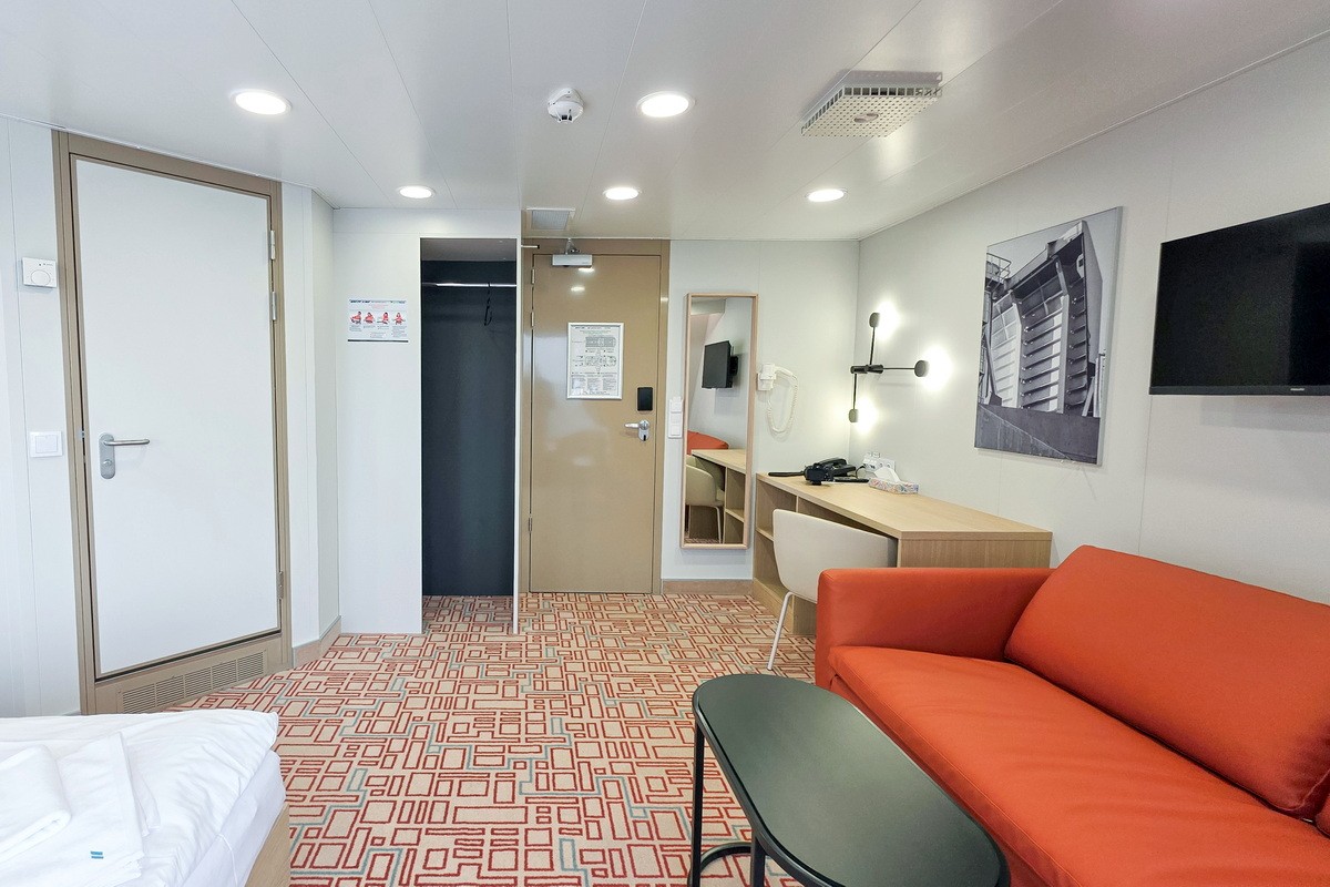Pasażerowie mogą korzystać z kabin w standardzie hoteli 3–4 gwiazdkowych – z komfortowymi łóżkami, ergonomicznymi meblami, przestrzenią do przechowywania bagażu i przyjaznym oświetleniem. Nowoczesne rozwiązania ograniczają hałas w pomieszczeniach mieszkalnych, zapewniając spokojną, relaksującą podróż i komfortowy sen.