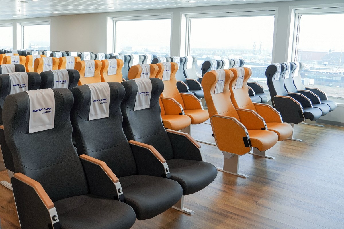 Poniżej zdjęcia, prezentujące wnętrza promu - materiały prasowe Unity Line.