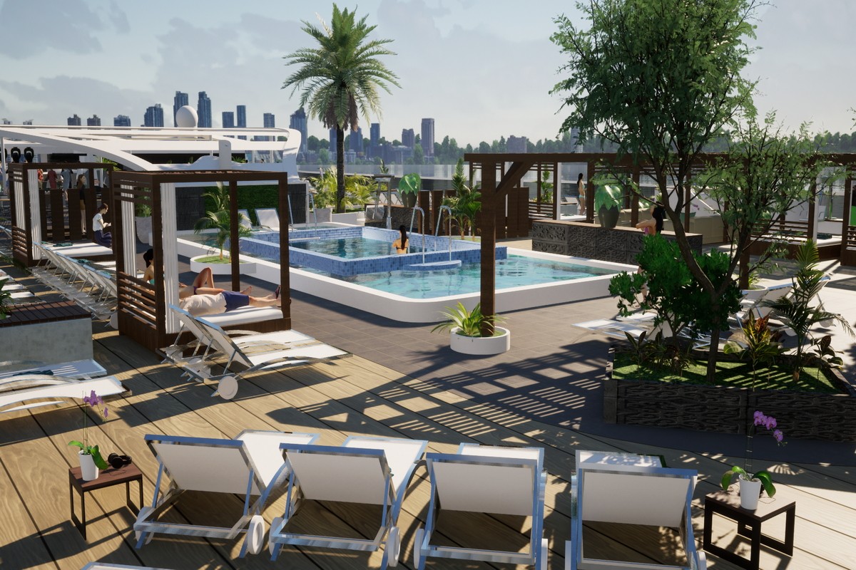 Brak tych elementów otwiera zupełnie nowe możliwości aranżacji pokładu słonecznego. Według wizualizacji udostępnionych przez Meyer Werft, zamiast masywnych konstrukcji z betonu i stali, pasażerowie zyskują niezakłócony widok na horyzont we wszystkich kierunkach, co jest jednym z najbardziej pożądanych elementów luksusowego rejsu.
