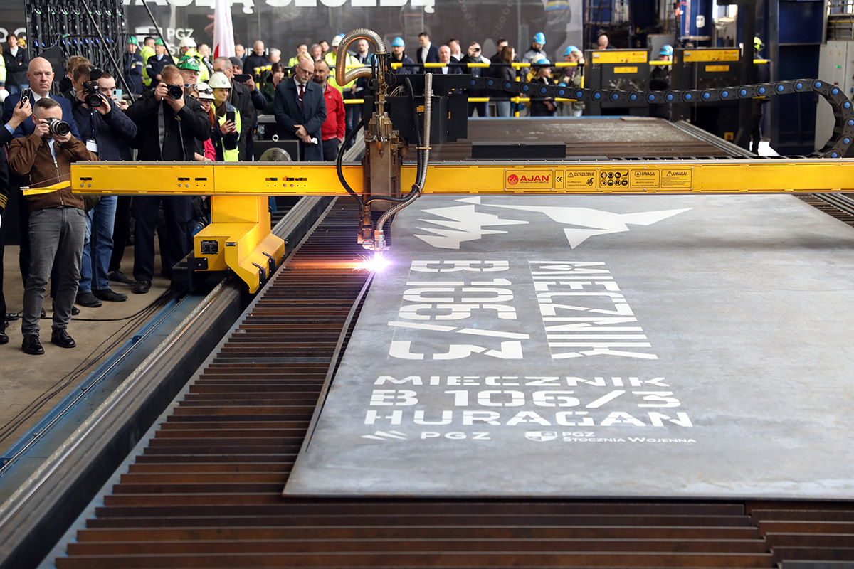 We wtorek w PGZ Stoczni Wojennej w Gdyni odbyło się „palenie blach”- czyli symboliczny początek budowy - nowej fregaty wielozadaniowej dla Marynarki Wojennej, przyszłego ORP Huragan. To trzecia z planowanych fregat Miecznik, które staną się podstawową siłą bojową polskiej marynarki.