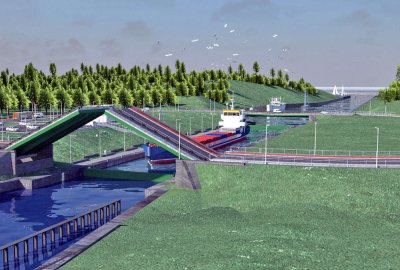 Kieszenie i wysuwane z nich podwójne wrota to elementy śluzy na budowanym kanale żeglugowym łączącym Zatokę Gdańską z Zalewem Wiślanym. J...