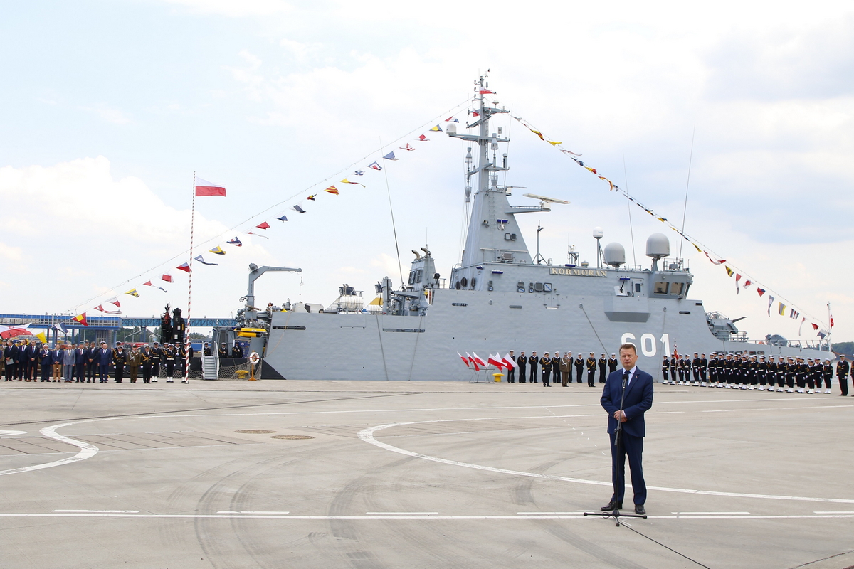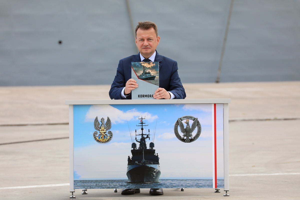 Błaszczak w niedzielę w Świnoujściu wziął udział w podpisaniu umowy na dostarczenie kolejnych trzech niszczycieli min typu Kormoran II Marynarce Wojennej. Obecnie w służbie znajduje się jeden okręt tego typu, a dwa kolejne przechodzą testy.