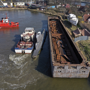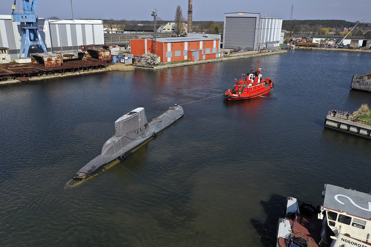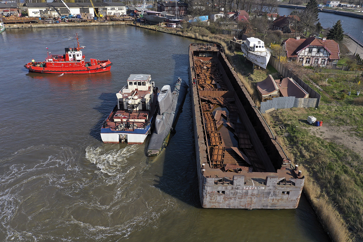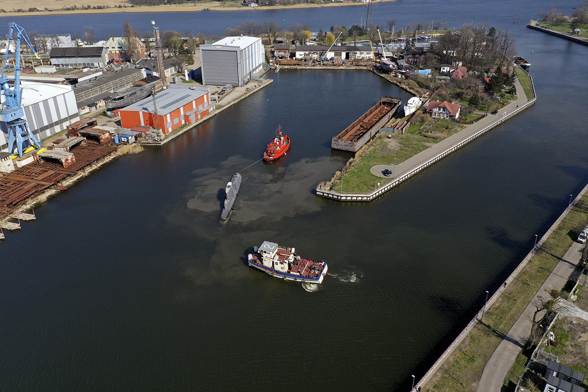 W czwartek, 20 kwietnia w basenie stoczniowym zlokalizowanym w Górkach Zachodnich w Gdańsku, w asyście holownika Słoń i pchacza Nosorożec G-02 zacumował okręt podwodny Kondor. To jednostka typu Kobben, którą w grudniu 2017 roku wycofano ze służby w Marynarce Wojennej.