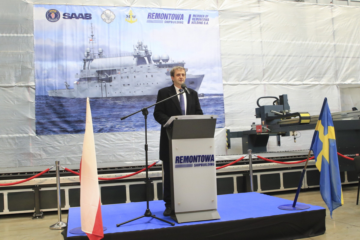 W środę, 15 listopada 2023 r. w stoczni Remontowa Shipbuilding S.A., należącej do Grupy Kapitałowej REMONTOWA HOLDING, uroczyście pocięto pierwszą stal na budowę kolejnego okrętu rozpoznania radioelektronicznego typu SIGINT (signal intelligence) dla polskiej Marynarki Wojennej. To druga jednostka tego typu, budowana w tej stoczni w ramach programu pod kryptonimem Delfin.