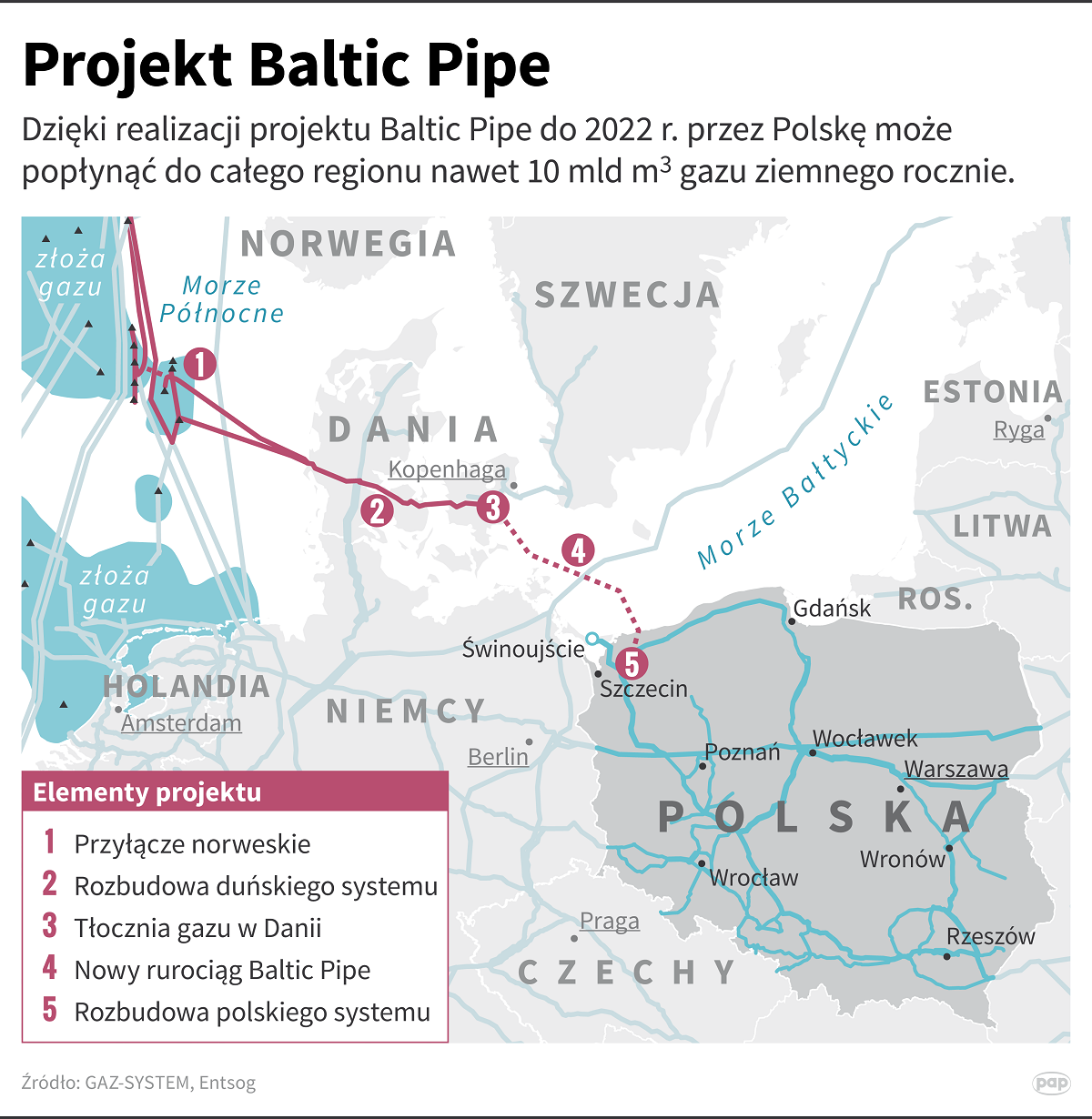 Baltic Pipe to strategiczny projekt infrastrukturalny, dzięki któremu powstanie nowy korytarz dostaw gazu na rynku europejskim. Umożliwi on transport gazu ze złóż w Norwegii na rynki duński i polski, jak również do odbiorców w sąsiednich krajach.