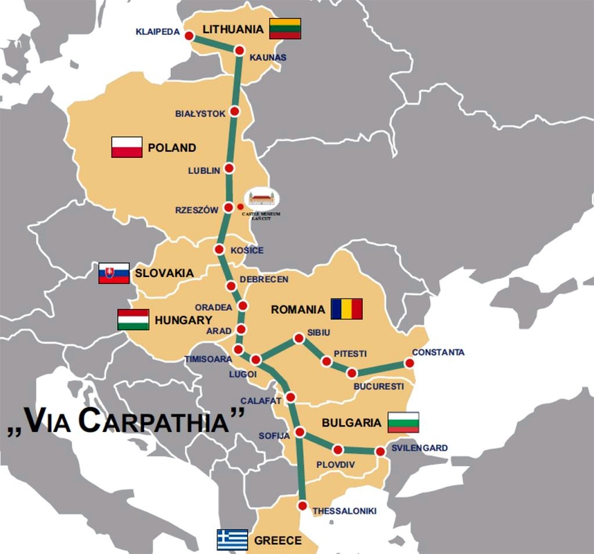 Via Carpatia w Polsce będzie miała ponad 700 km długości i przebiegnie przez województwa: podlaskie, mazowieckie, lubelskie i podkarpackie. Jej częścią, oprócz S19, będzie również m.in. S61. Trasa ma przebiegać z Kłajpedy i Kowna na Litwie przez Białystok, Lublin, Rzeszów i słowackie Koszyce do Debreczyna na Węgrzech, a dalej do Rumunii, Bułgarii i Grecji. Szlak ma docierać m.in. do rumuńskiego portu w Konstancy nad Morzem Czarnym oraz greckich Salonik nad Morzem Egejskim.