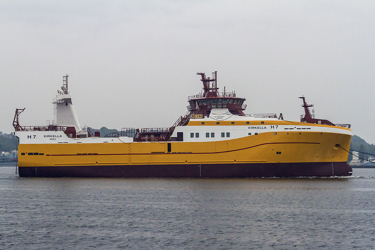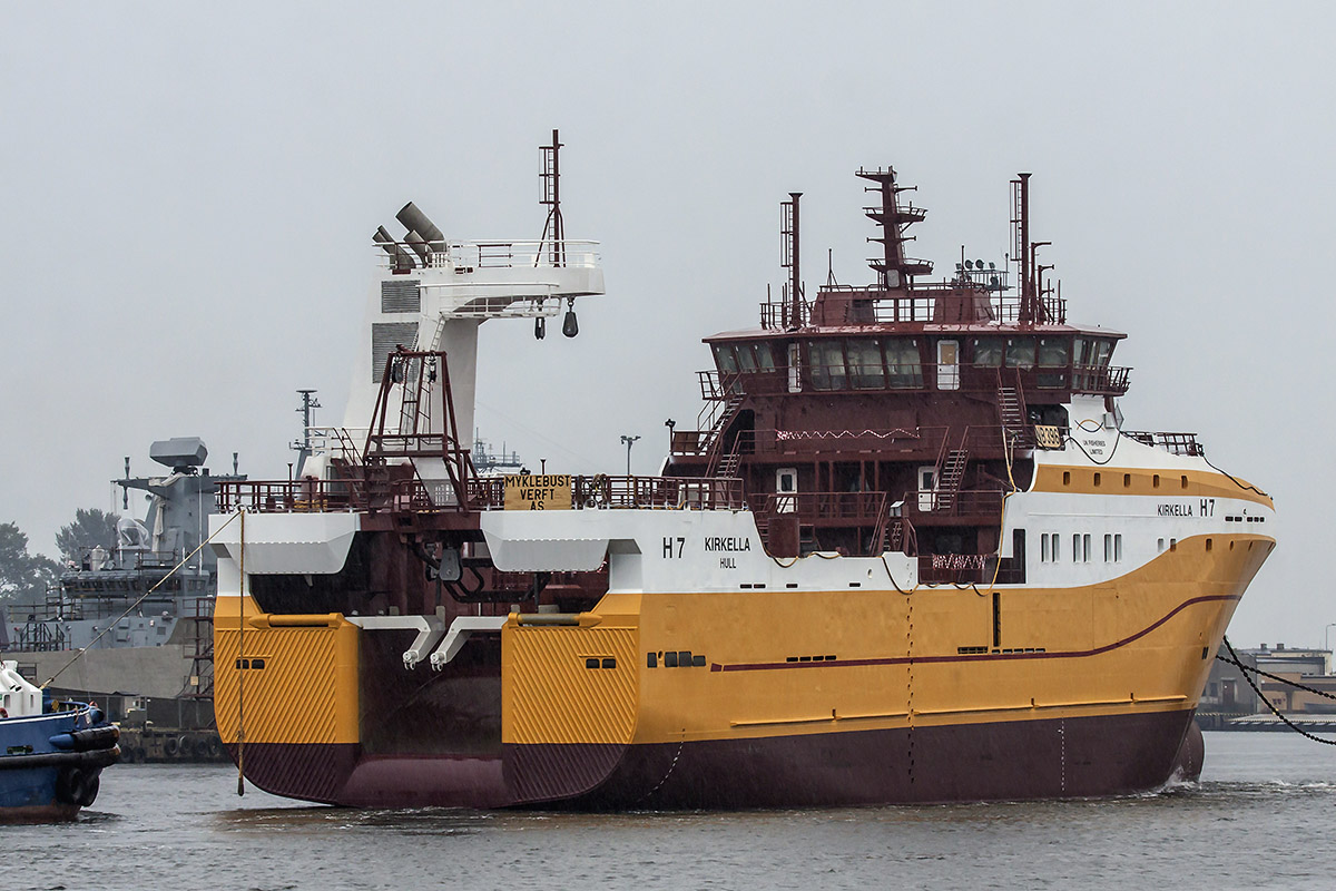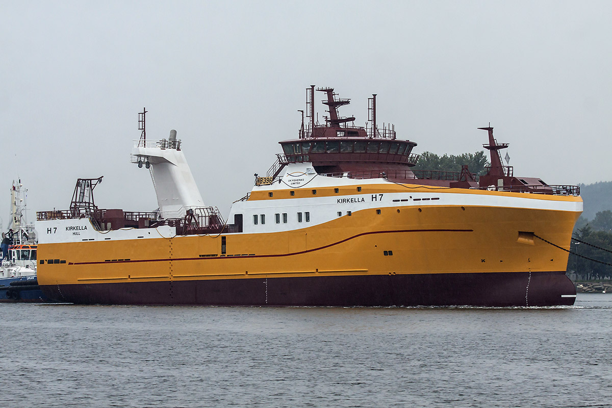 Wczoraj, tj. w środę, 16 sierpnia, późnym popołudniem wyholowano, po wodowaniu i wydokowaniu, które miało miejsce kilka dni wcześniej, częściowo wyposażony trawler Kirkella (o stoczniowym symbolu budowy Kleven NB 396 lub Myklebust 396), o długości całkowitej 80,00 m, szerokości konstrukcyjnej 16,00 m i tonażu pojemnościowym brutto ok. 4110 jednostek.