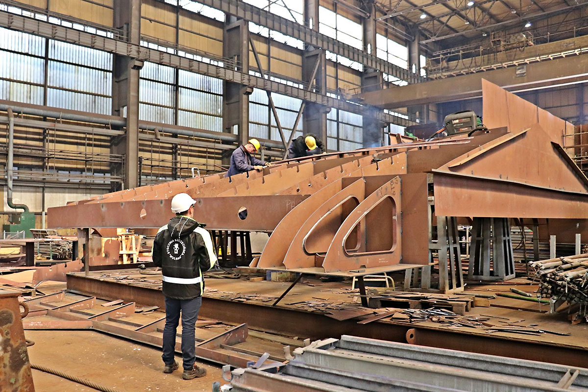 Zakończenie montażu kadłuba spodziewane jest do końca czerwca 2023 roku na pochylni Wulkan.