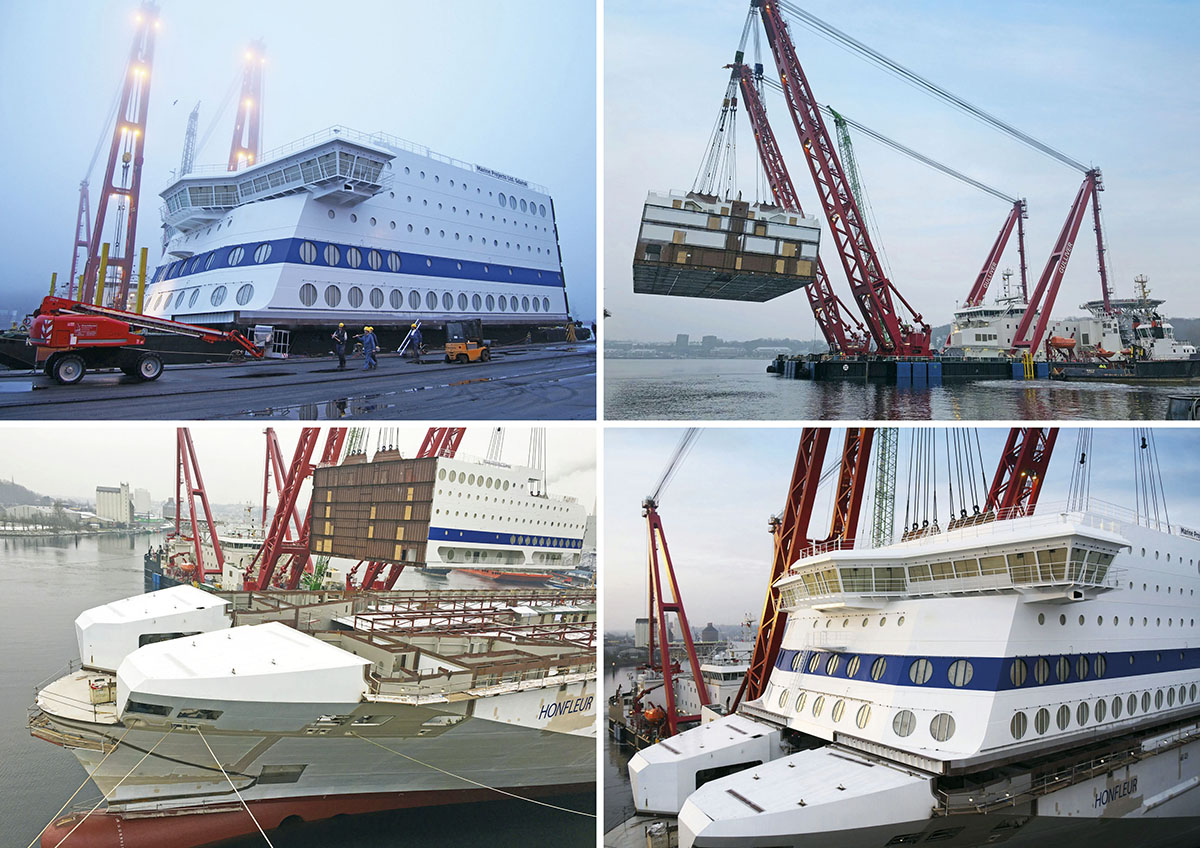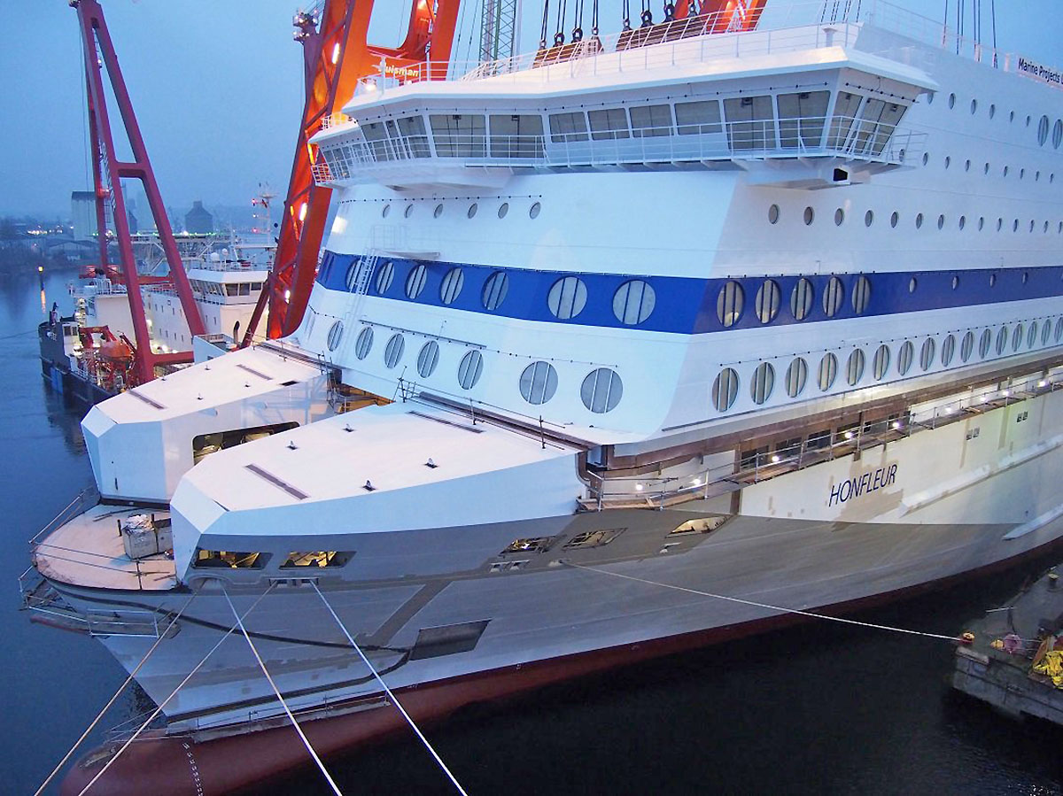 Częściowo wyposażone bloki nadbudówki na prom Honfleur dostarczyły, na zlecenie stoczni we Flensburgu, stocznie Marine Projects Ltd. Sp. z o.o. i Holm Construction Ltd. Sp. z o.o. z Gdańska. Prawdopodobne jest także, że polskie stocznie dostarczyły także przynajmniej część bloków kadłuba na budowę tego statku.